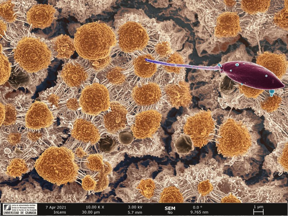 Esta imagen fue realizada junto a los investigadores de la Universidad de Granada Luis Miguel de Pablos, Pedro García y Jessica Carreiro, la microscopista Alicia González y coloreada por nuestra compañera Lola Molina.